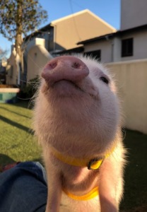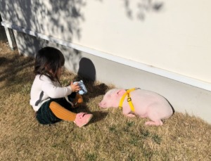 ほとんど寝て過ごすマイクロブタですが、健康のために少しは歩いたり