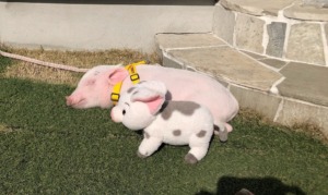 ミニブタってめちゃでかい!ペットとして飼うにはうちの広さじゃ無理!とあきらめかけていたのですが、マイクロブタは20キロ前後なので「普通のブタ!」と感じたのです。
