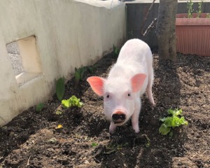 庭も自由に歩き回れるようにしてあげたいと思うのですが、マイクロブタと畑の相性はサイアクなようで…。庭散策をさせて目を離してしまったらこのお顔。