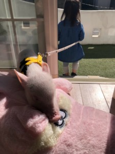 マイクロブタはちゃんとなついて、名前を呼べば寄ってくるし(餌を持っていれば倍速で寄ってくる)、すぐにすり寄ってくるし、子供たちとの関係は良好そうです。