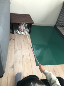 その後は第二の居場所である机の下に身を潜める。