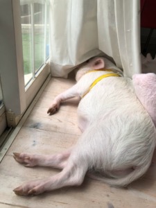 真夏のマイクロブタは庭でひなたぼっこして、木陰で昼寝をして、クーラーも堪能しながら